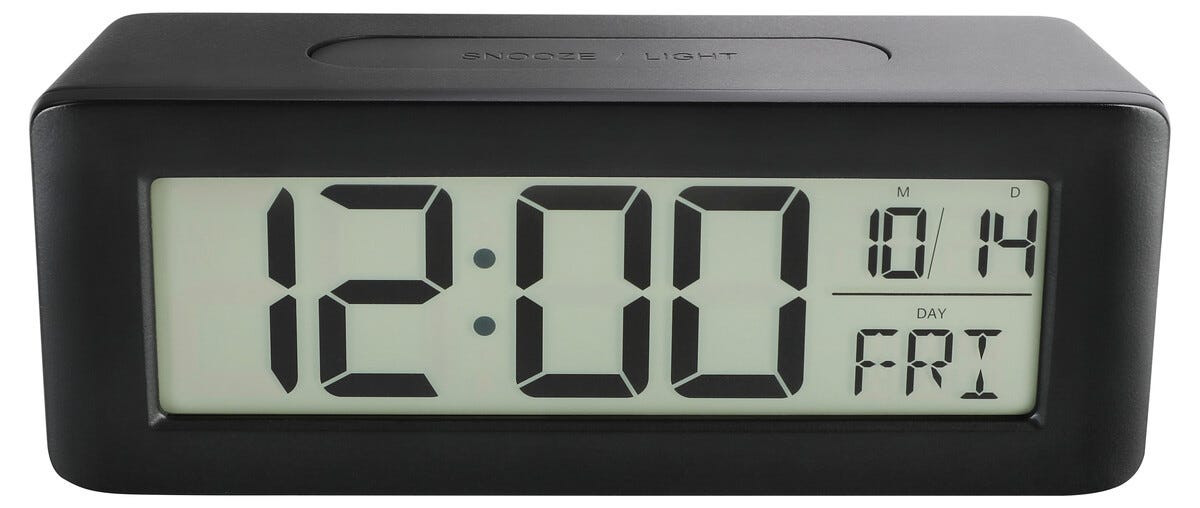 • Batteridriven väckarklocka med 12/24-timmarsvisning.