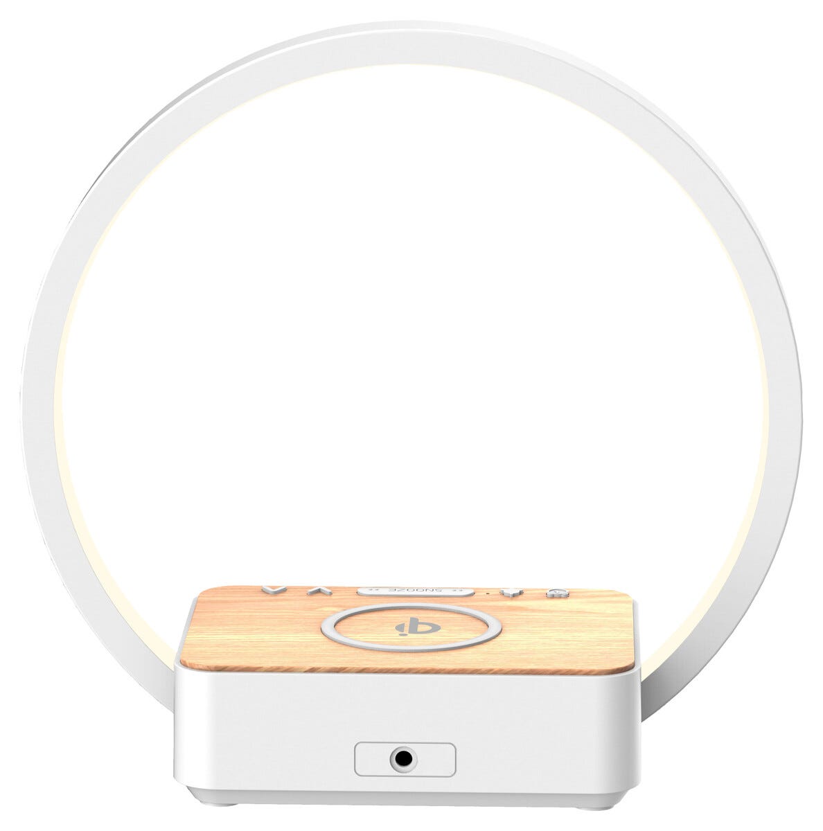 • Digital väckarklocka med inbyggd trådlös Qi-laddare för mobil och hörlurar.