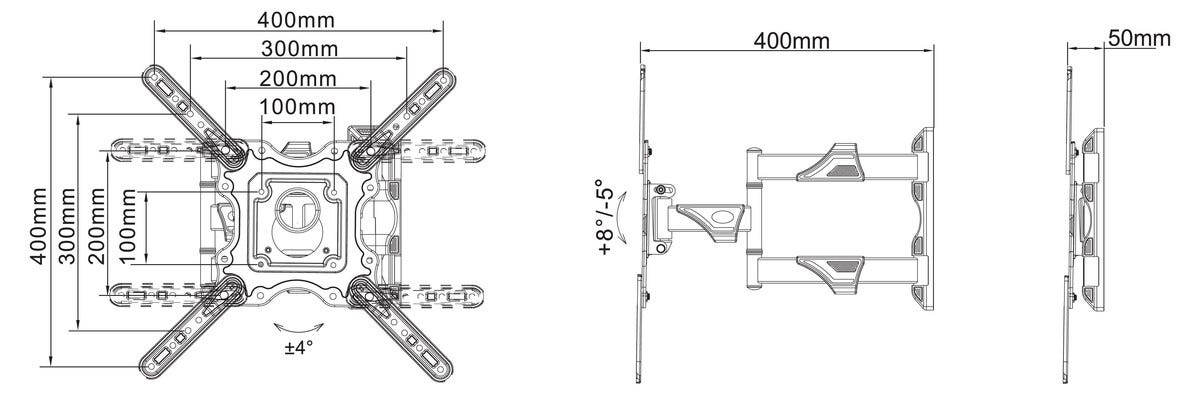 • Vesa standard 100 x 100 – 400 x 400.