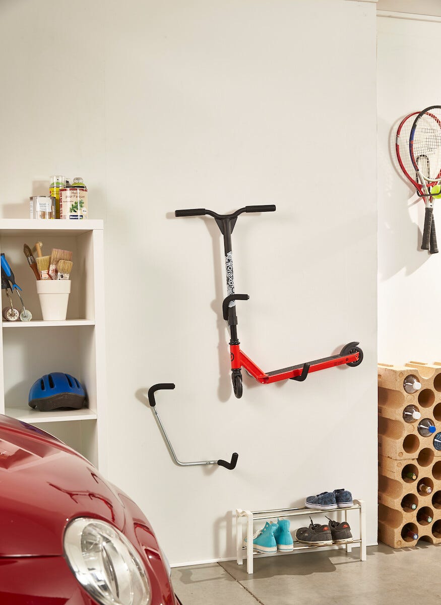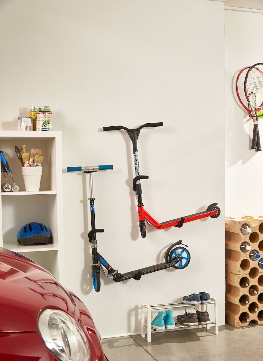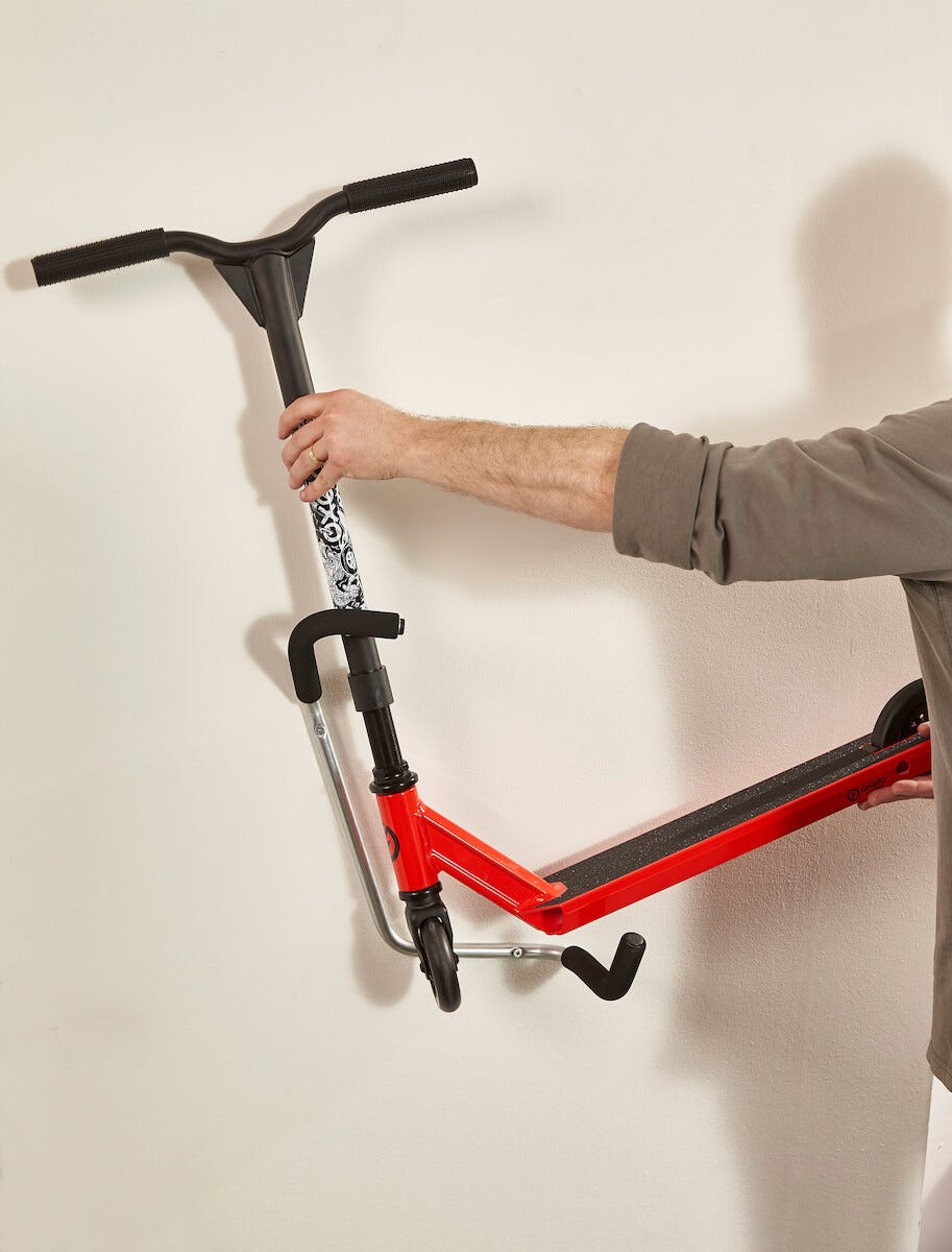 • Häng upp din kickbike på väggen och skapa utrymme på golvet.
