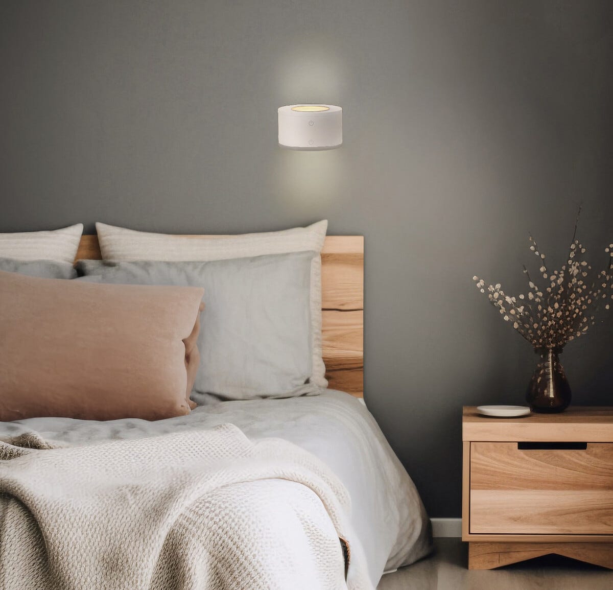 Vägglampa uppladdningsbar, dimbar LED, USB , vit