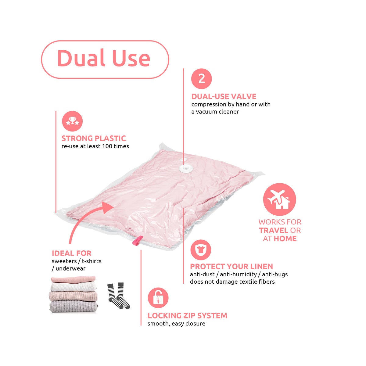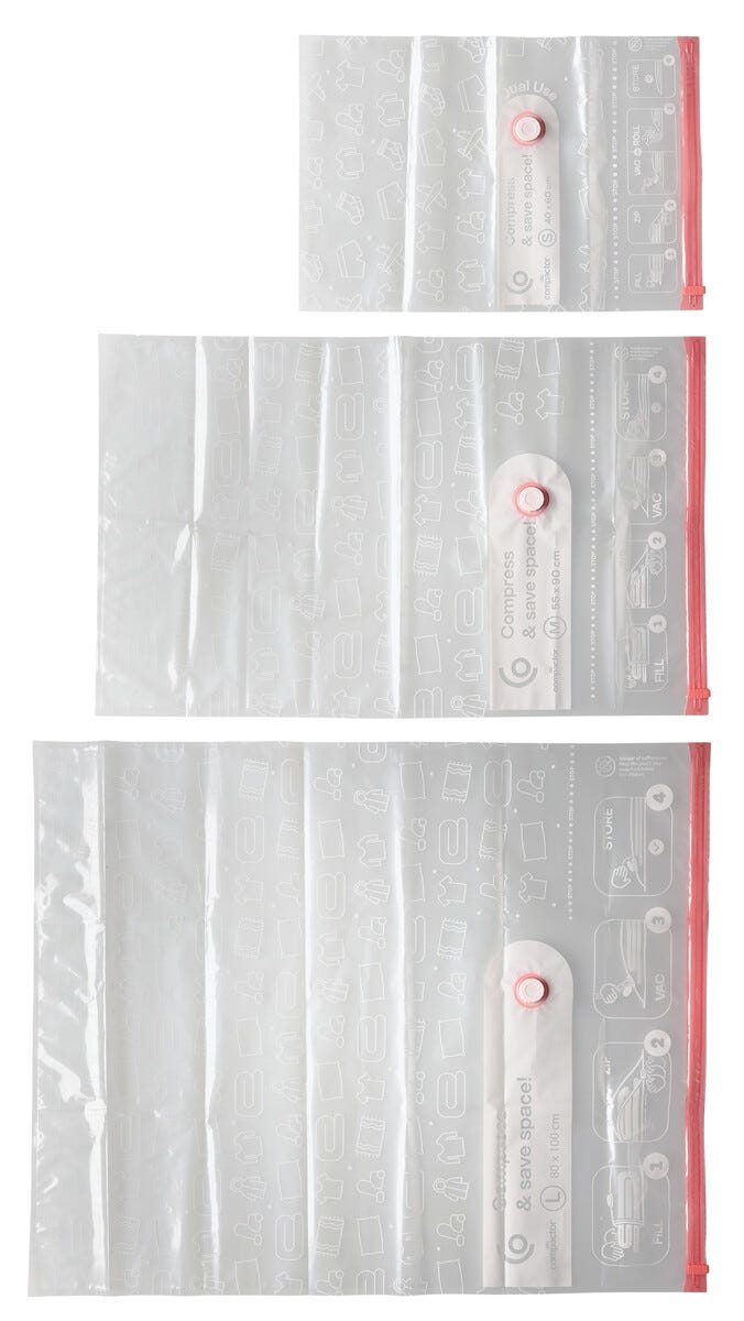 • Vakuumpåse – platssmart förvaring av täcken, kuddar, jackor och tröjor.