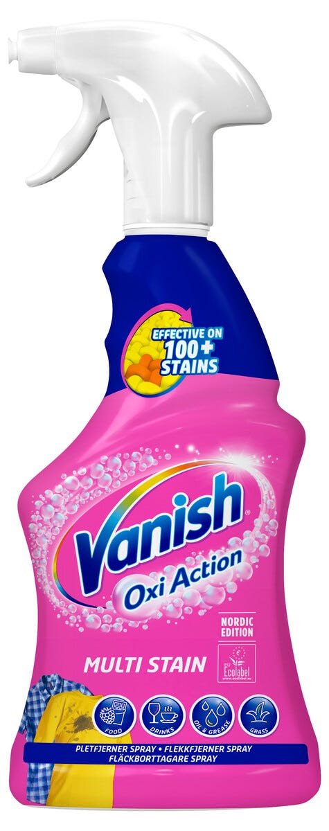 • Vanish Oxi Action Spray för både vit- och kulörtvätt, skonsam och effektiv.