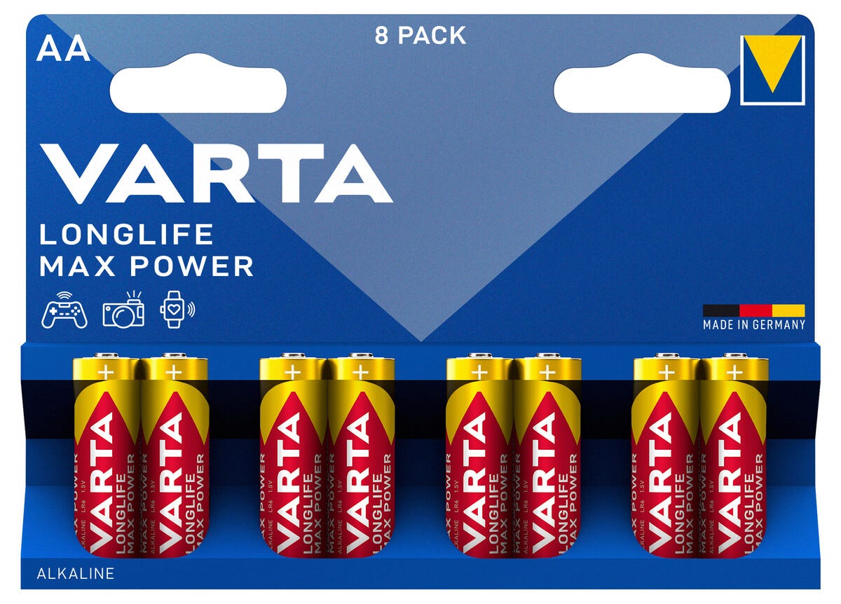 Varta Longlife Max Power AA/LR6-batterier, 8-pack