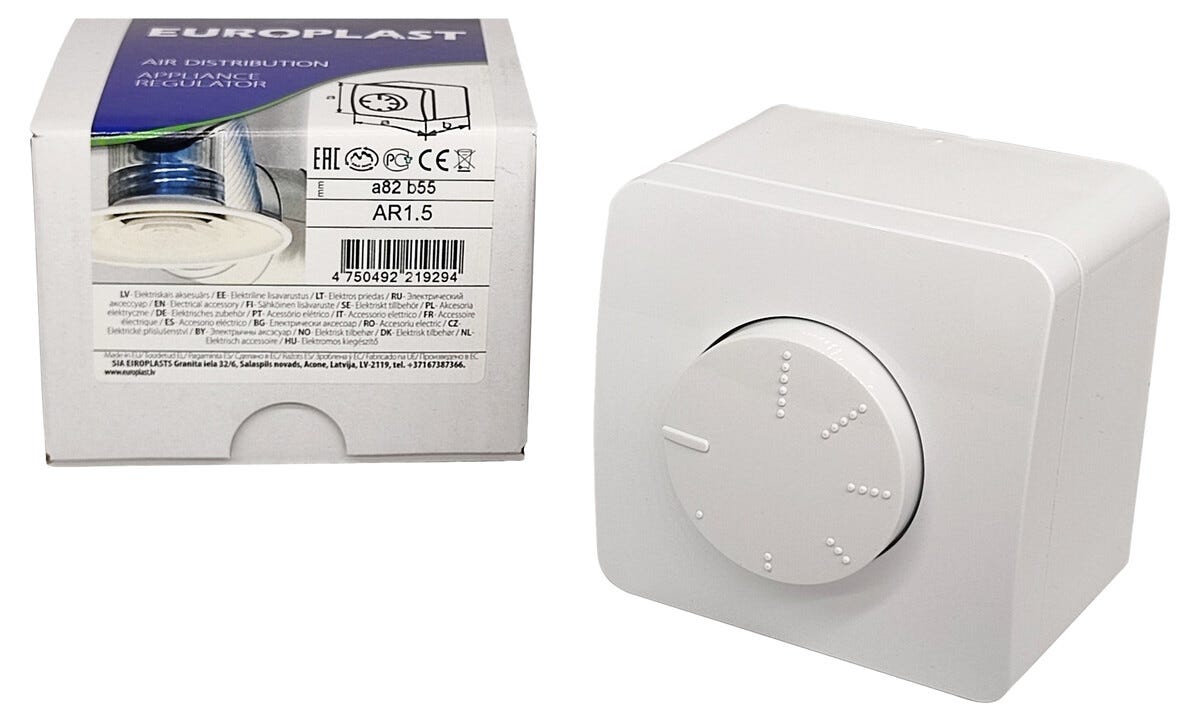 • Väggmonterad varvtalsregulator för 230 V fläktmotorer.