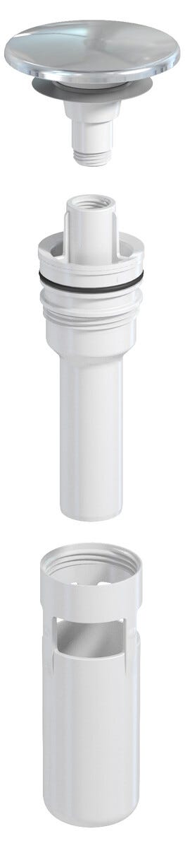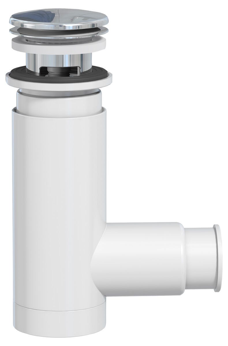 • Lättanvänt vattenlås med bottenventil och popup i kromad mässing.