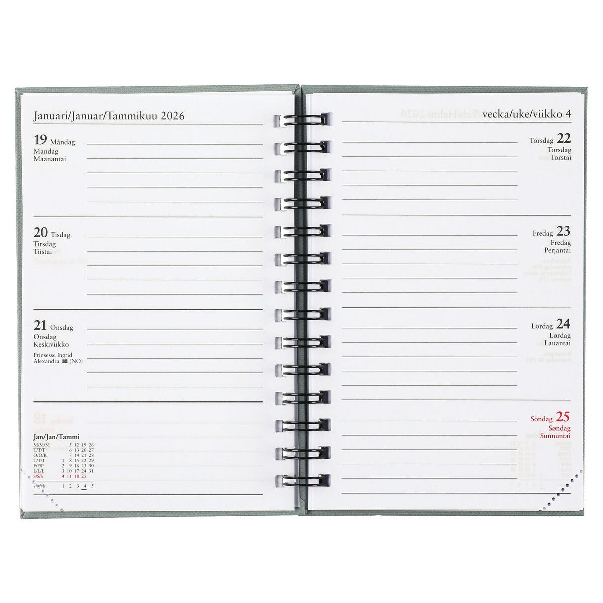 • Spiralbunden FSC®-märkt kalender 2026 – en vecka per uppslag.