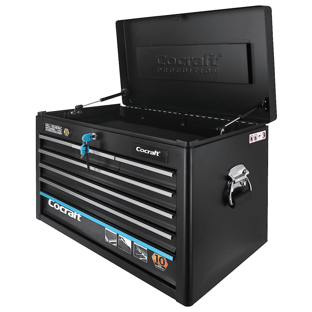 • Rejäl topplåda med lock, passar verktygsskåpet 40-7818-1.