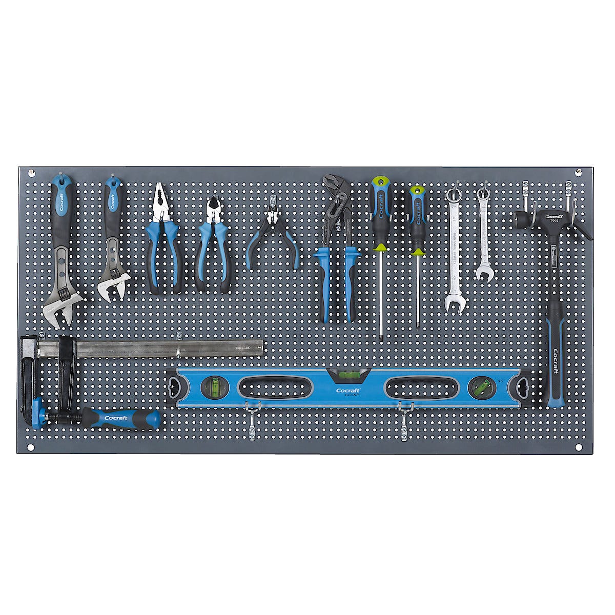 • Praktisk verktygsförvaring som monteras på en vägg.