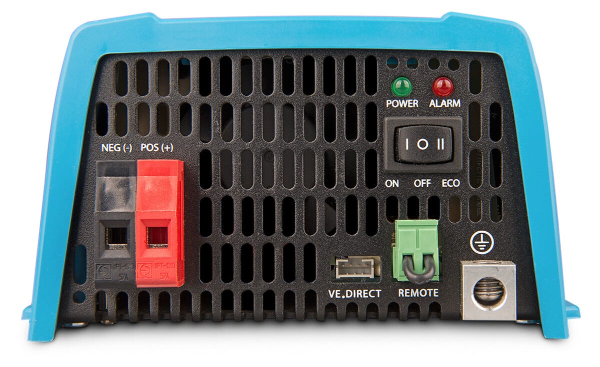 • Victron Phoenix 12 V – växelriktare som även hanterar känslig elektronik.