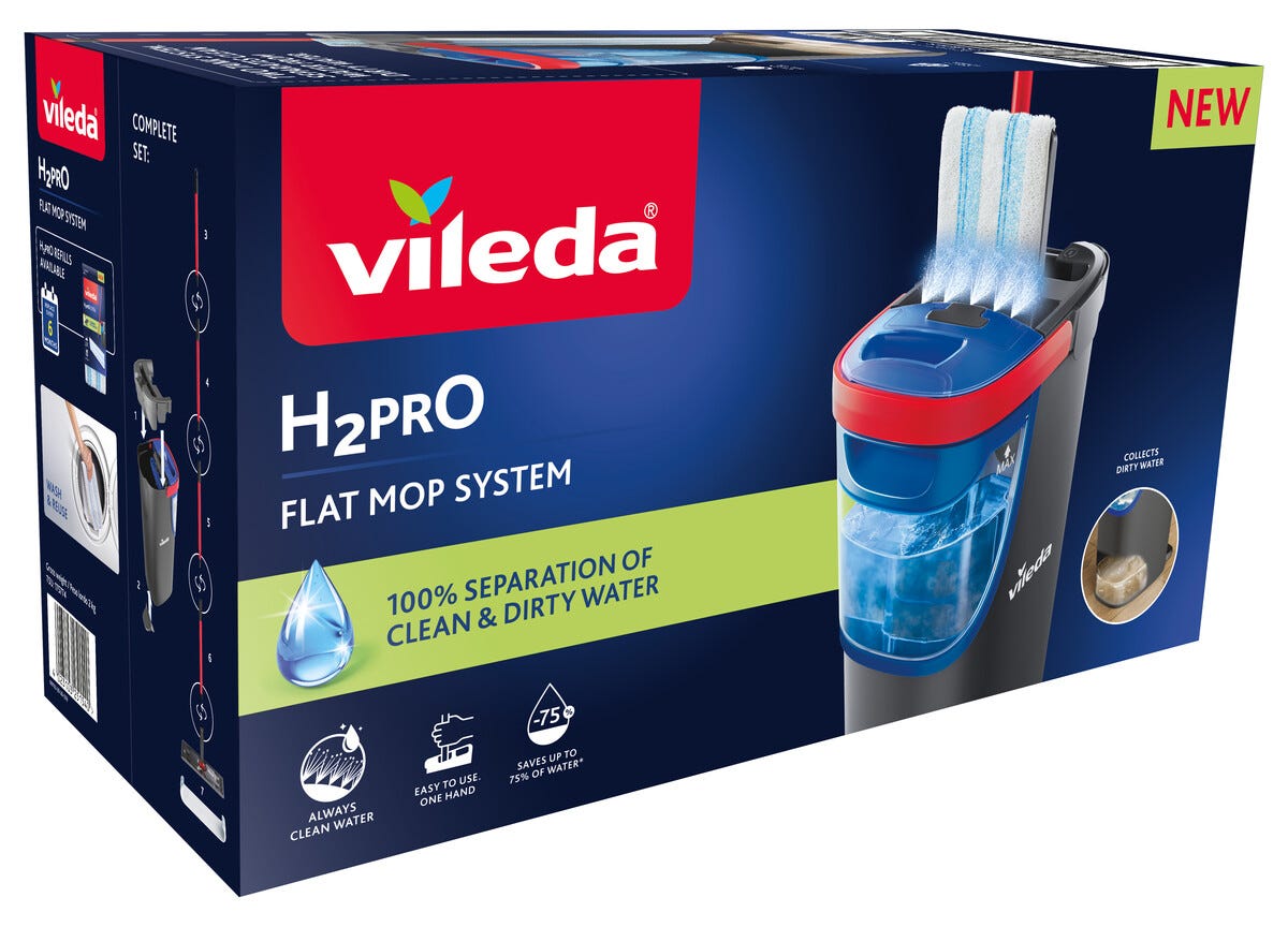 • Vileda H2Pro Flat Mop system – flatmopp med magnetisk fällmekanism.