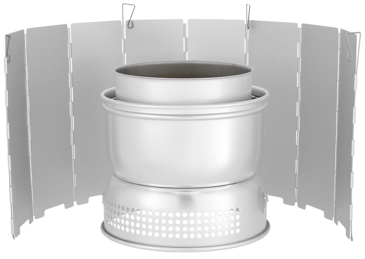 • Vikbart vindskydd för spritkök, gaskök och mindre eldstäder.