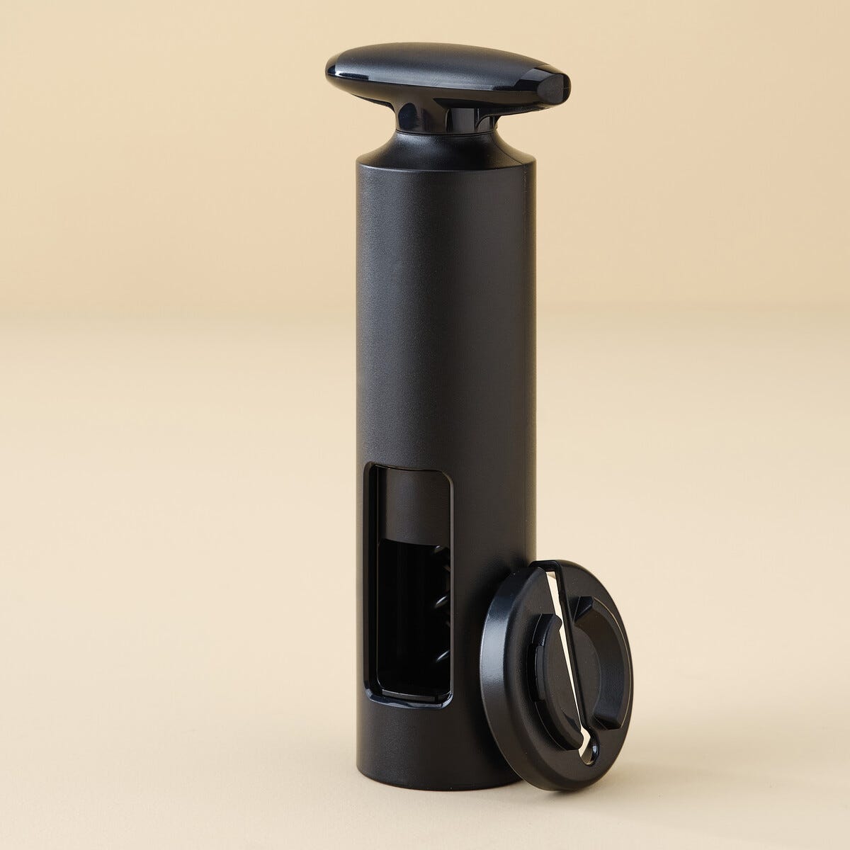• Manuell vinöppnare med folieskärare och öppning på sidan.