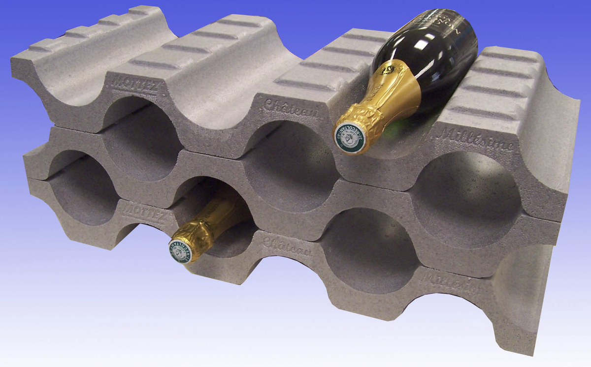• Lätt flaskställ i polystyren som passar för vinflaskor, läskflaskor eller vattenflaskor.