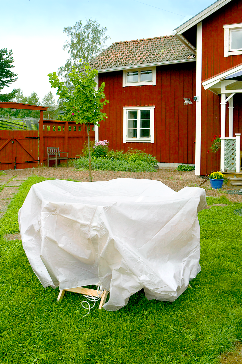 • 2 små presenningar som skydd för utemöbler och mer – ingjuten armering.