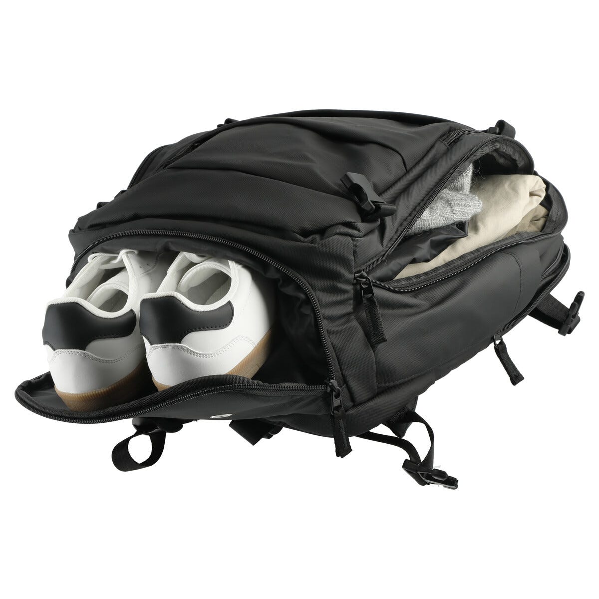 • Separata fack för laptop, skor och kläder – för jobb, träning och resa.
