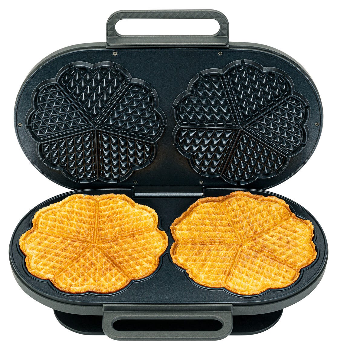 • Grädda 2 stora, frasiga och hjärtformade våfflor samtidigt.