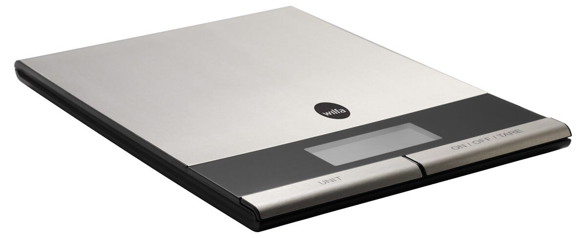 • Wilfa KW-4 digital köksvåg med tarering – nollställ med vikt på vågen.