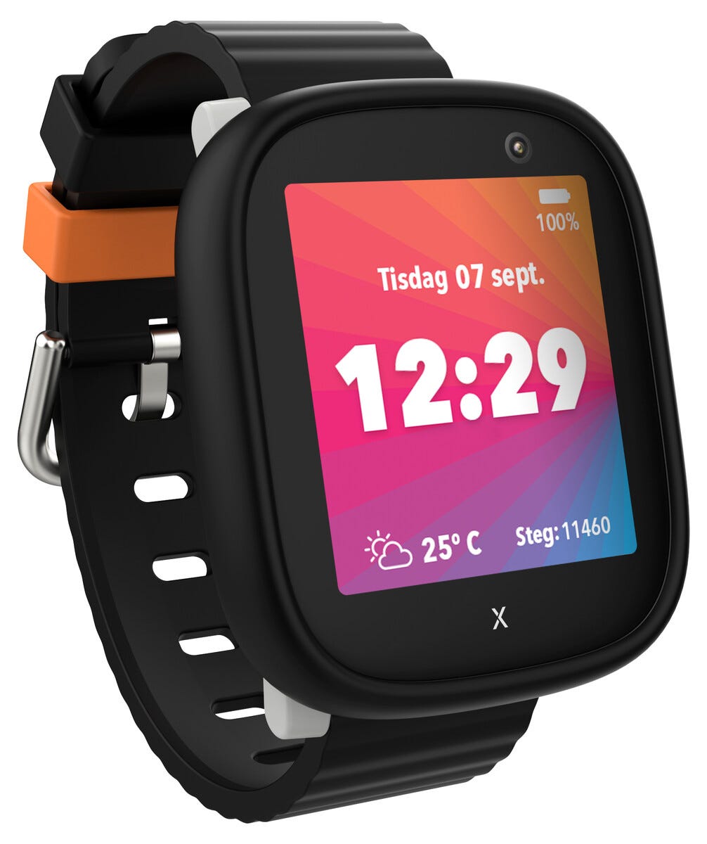 • GPS-klocka med inbyggt SIM-kort – kopplas ihop med Xplora föräldra-app.