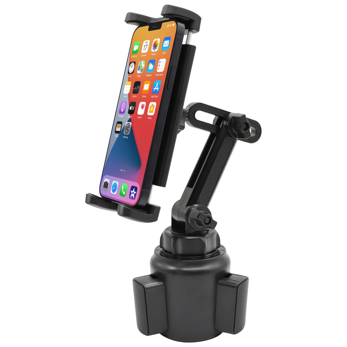 • Stadig bilhållare för surfplatta eller mobil – fästs enkelt i mugghållaren.