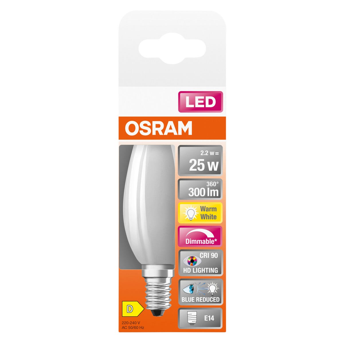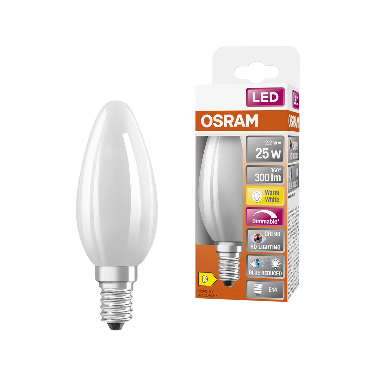 Dimbar kronljuslampa LED E14 Osram, varmvit