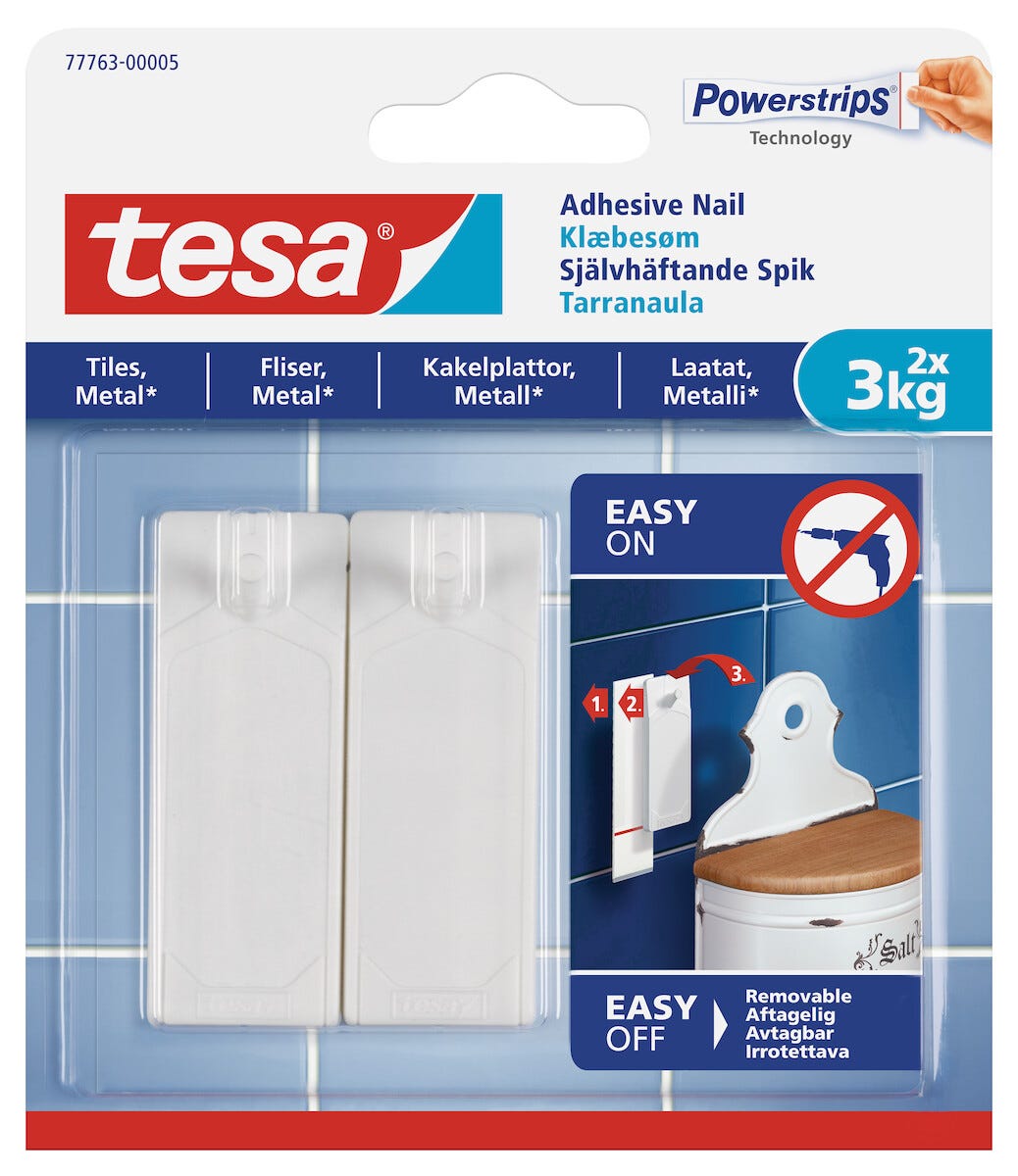 • Självhäftande spik som sitter säkert och är enkel att flytta.
