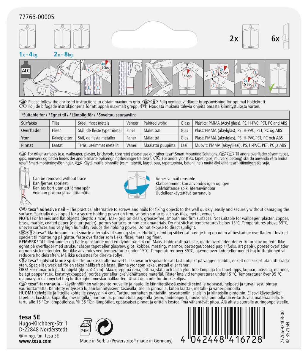 • Självhäftande spik som sitter säkert och är enkel att flytta.