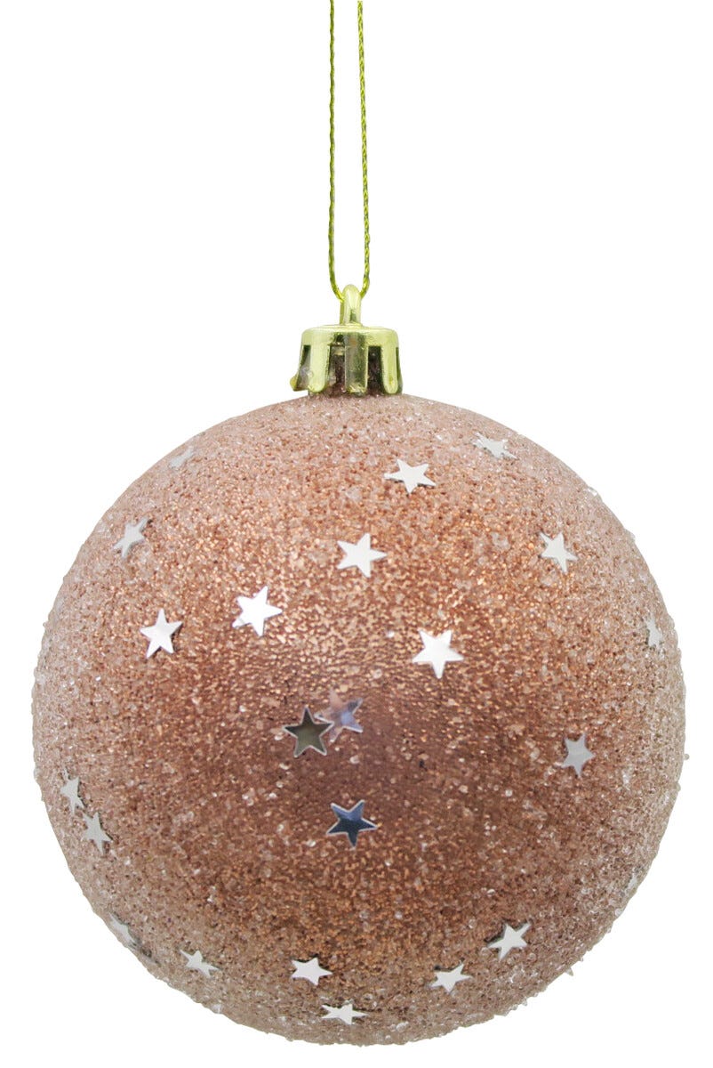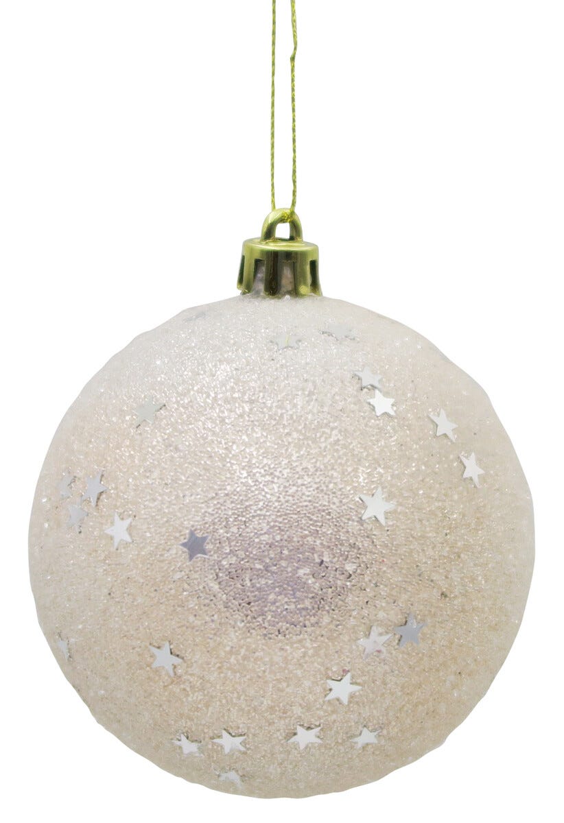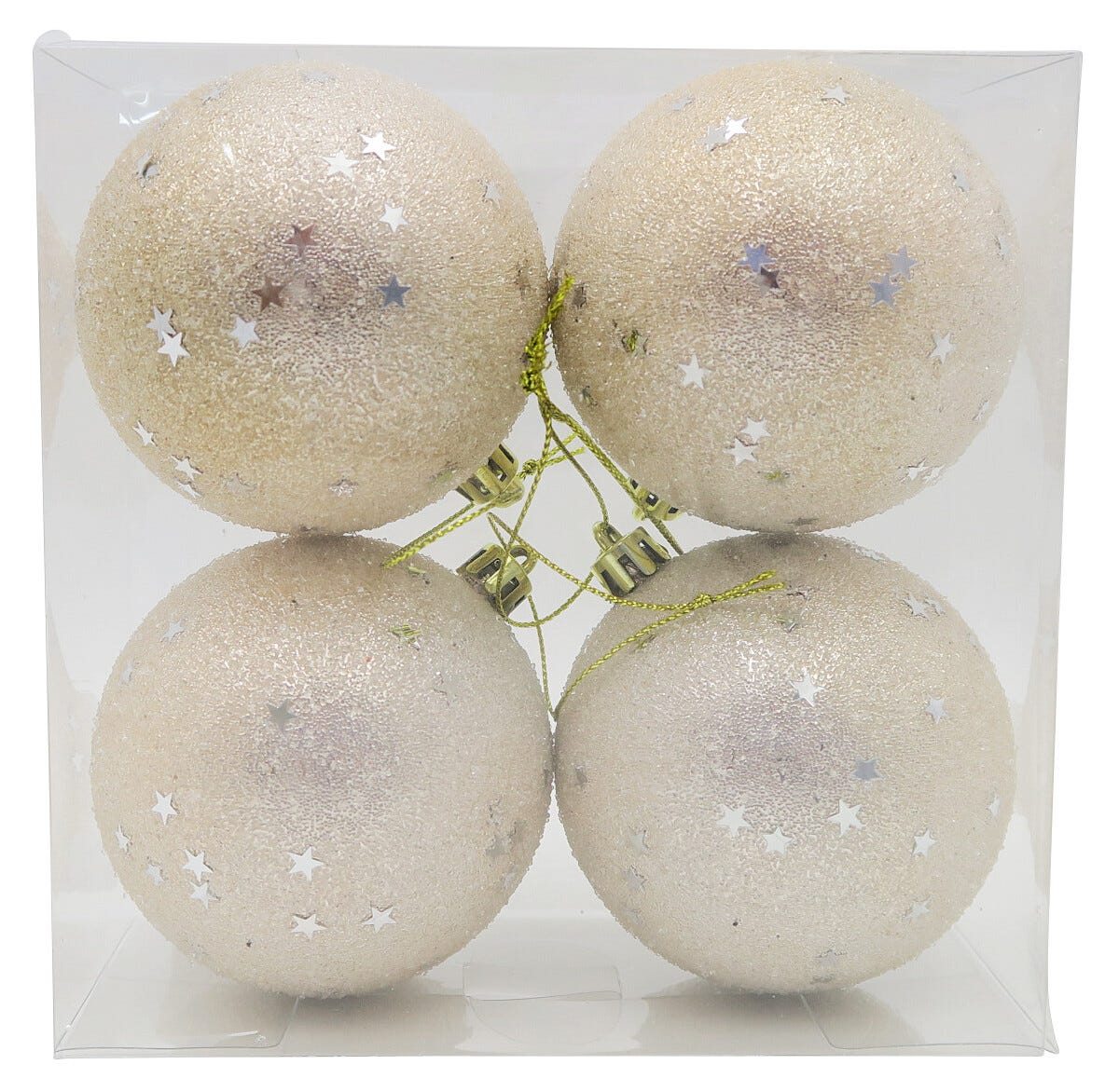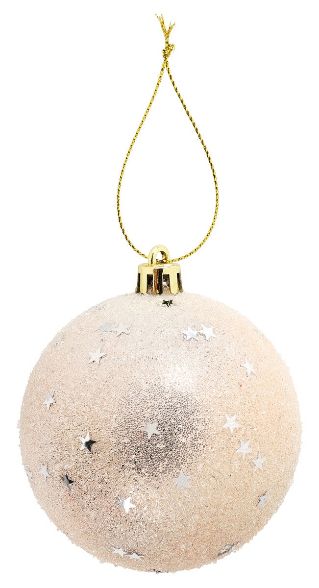 • Glittriga julkulor med en frostig struktur.