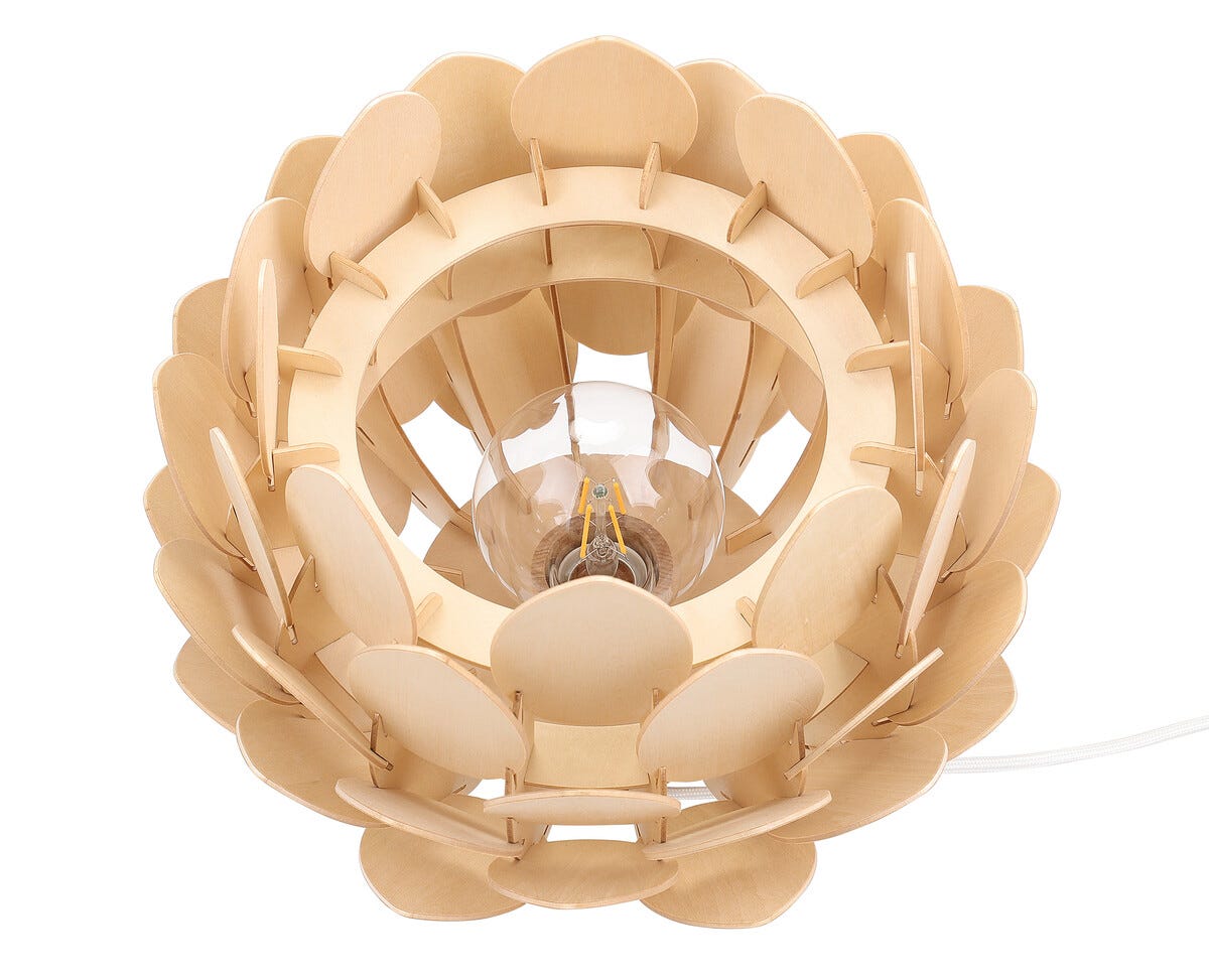 • Lampskärm av tunna träblad – skapar en varm stämning med inspiration från naturen.