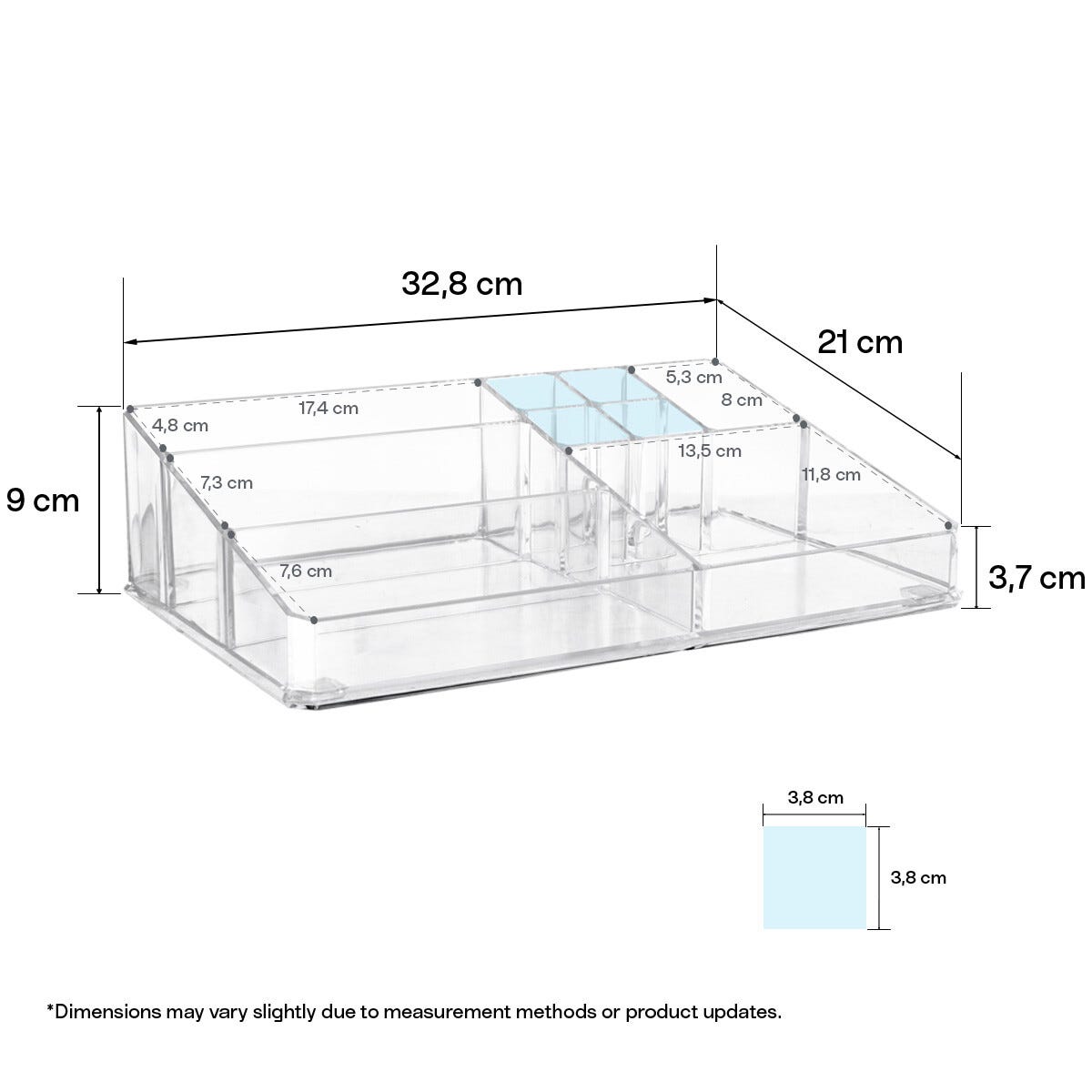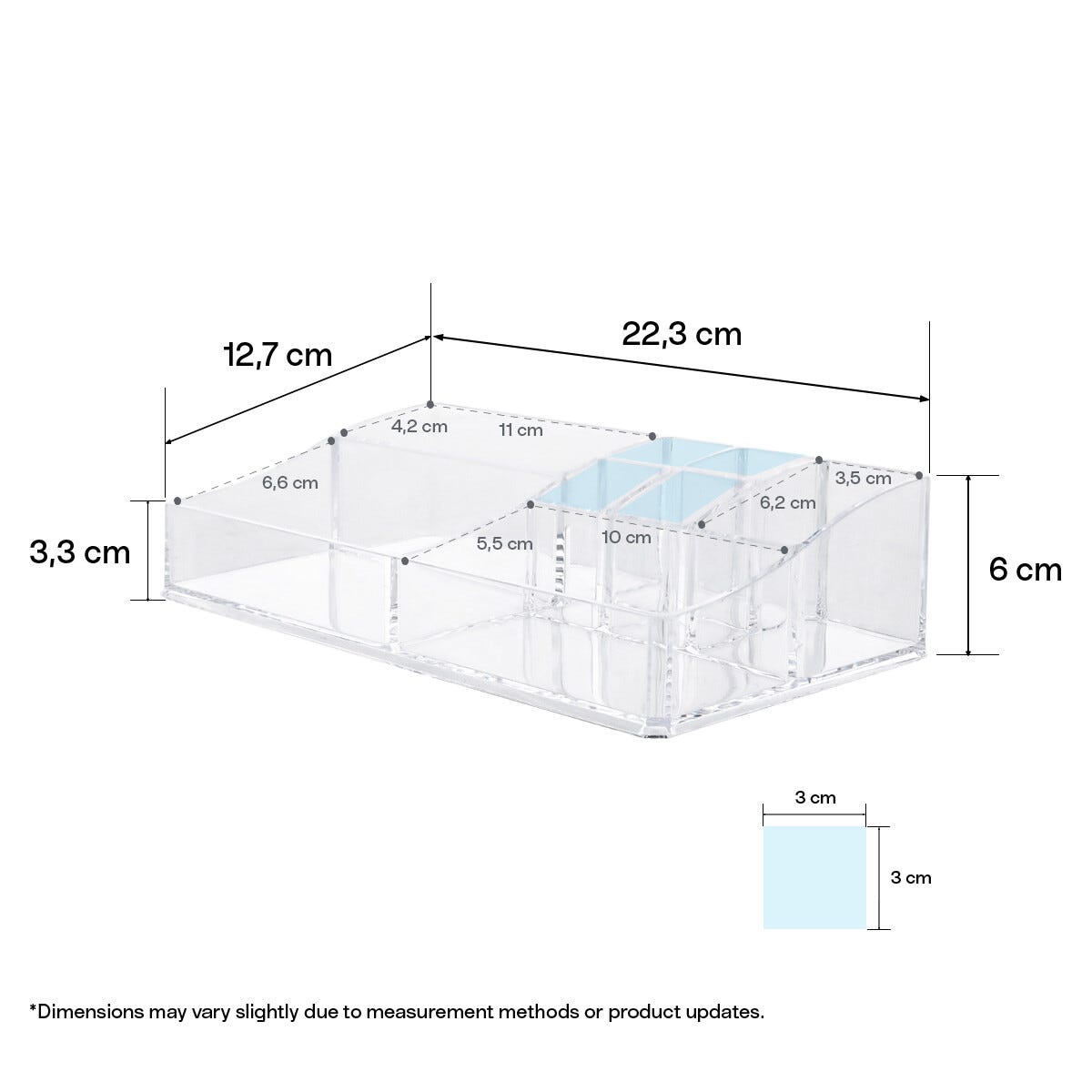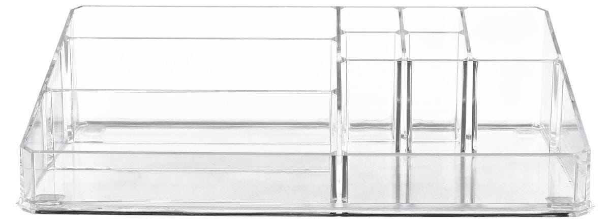• Transparent sminkförvaring – finns i flera storlekar och utföranden.